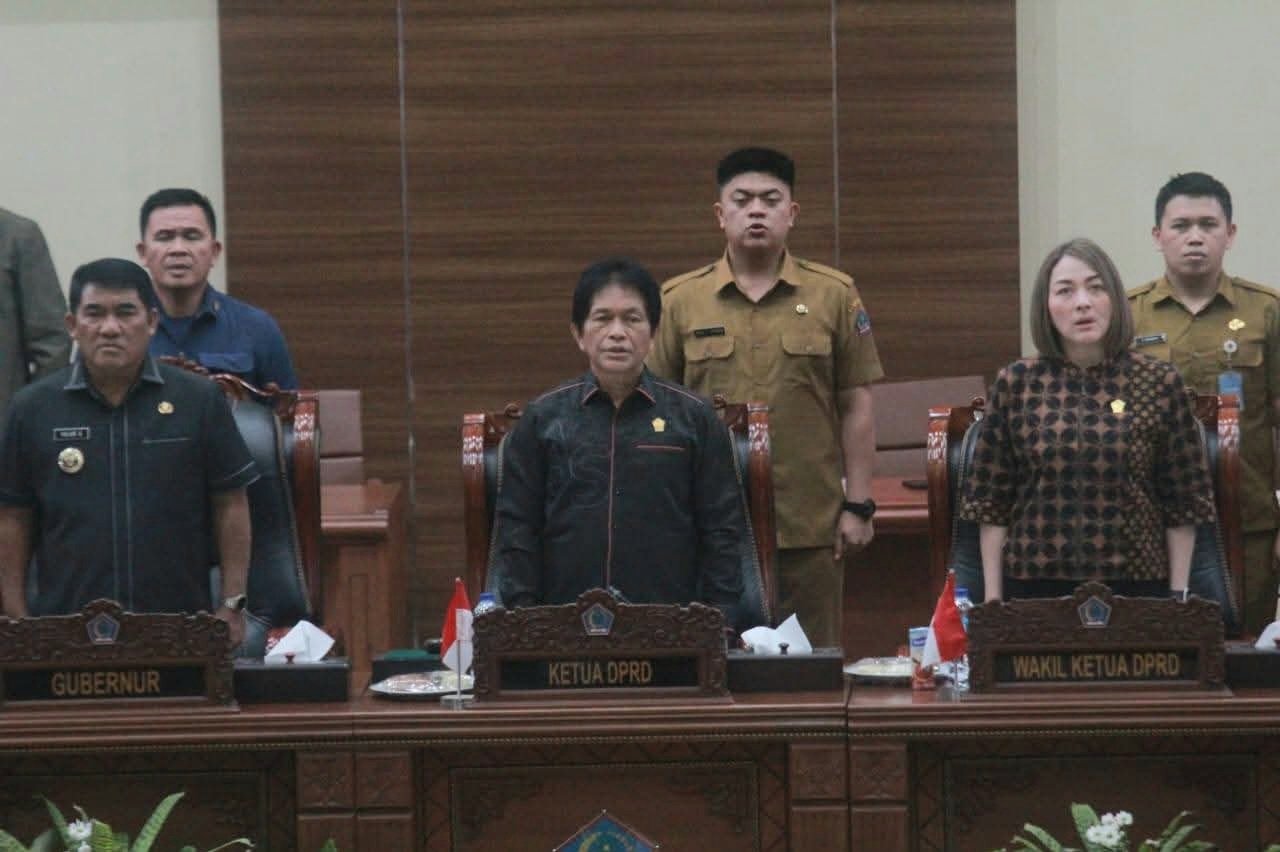 Rapat paripurna dipimpin Ketua DPRD Sulut dr. Fransicus Andi Silangen S.pB.KBD didampingi Wakil Ketua dr. Micaela Paruntu MARS, Royke Anter, SE.ME dan Stela Runtuwene A.Md Sek.