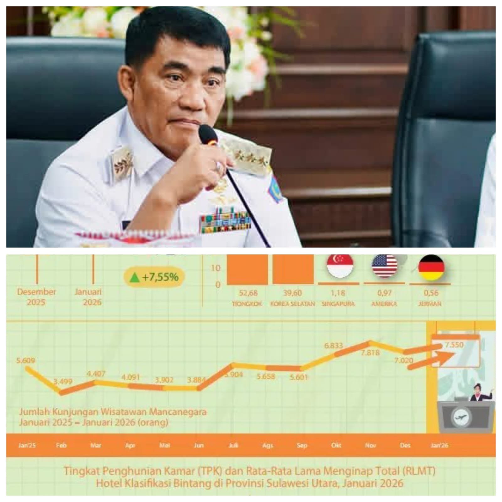 Capaian positif di awal tahun 2026 ini menjadi modal berharga bagi Pemerintah Provinsi Sulawesi Utara untuk terus mewujudkan visi Sulawesi Utara sebagai pusat pertumbuhan ekonomi baru di kawasan Pasifik melalui sektor pariwisata yang inklusif dan berkelanjutan.
