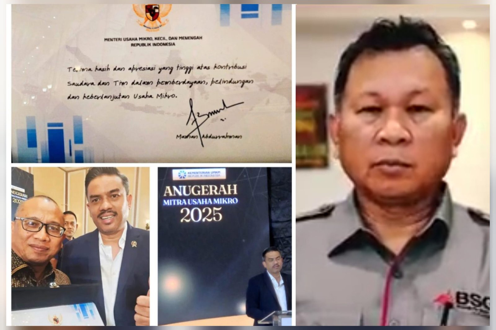 Penghargaan bergengsi yang ditandatangani langsung oleh Menteri UMKM, Maman Abdurrahman, ini diserahkan dalam seremoni khidmat di Menara Peninsula Hotel, Jakarta, Rabu (17/12/2025). Mewakili Dirut Revino Pepah, Group Head Pemasaran BSG, Iskandar Modjo, hadir langsung menerima piagam apresiasi tersebut.