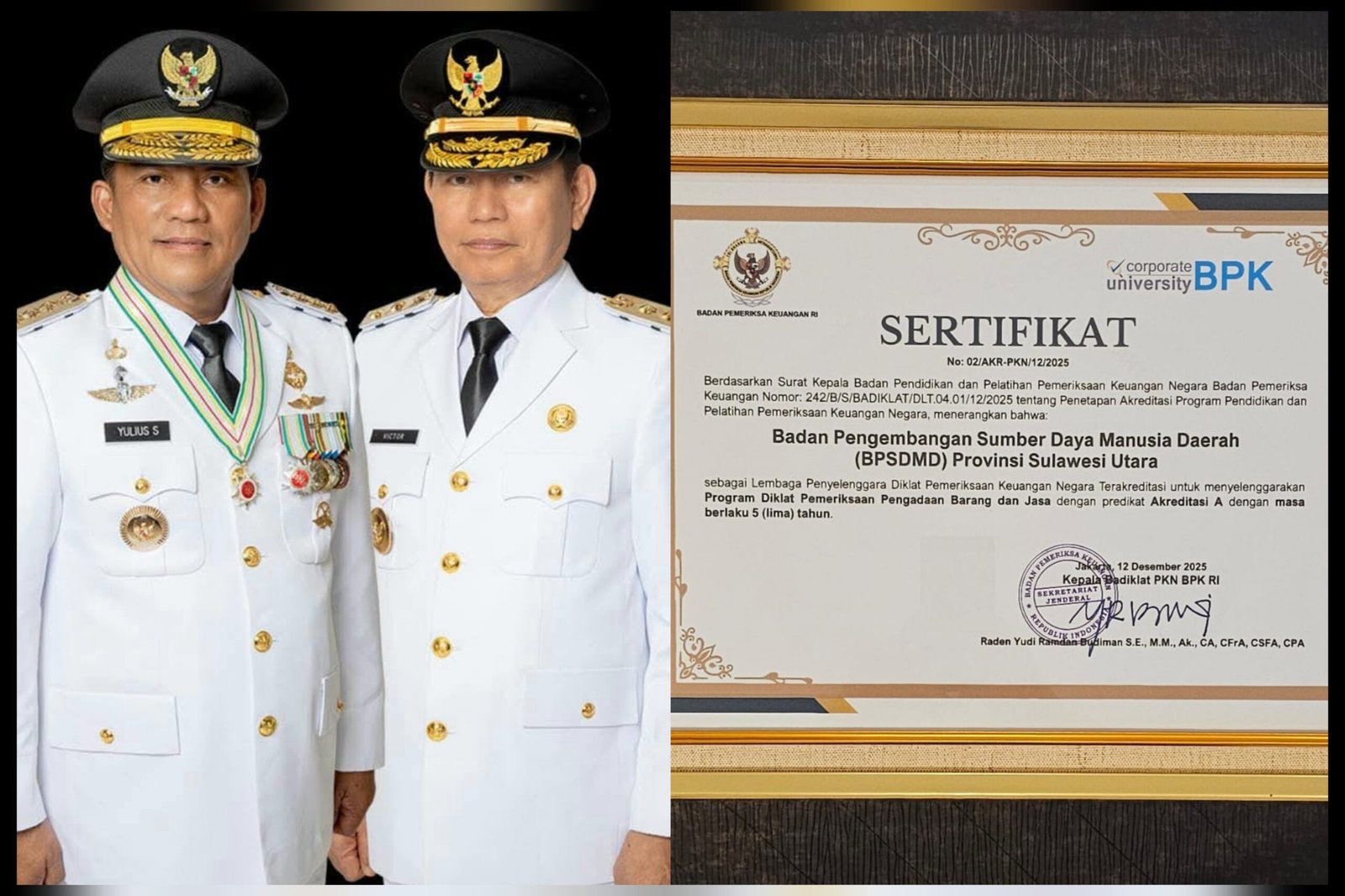 Bukti nyata tersebut, saat Pemprov Sulut berhasil meraih penghargaan Sertifikat Akreditasi Pelatihan dengan nilai A di bidang Pemeriksaan Keuangan Negara dari Badan Pendidikan dan Pelatihan Pemeriksaan Keuangan Negara (Badiklat PKN) BPK RI.